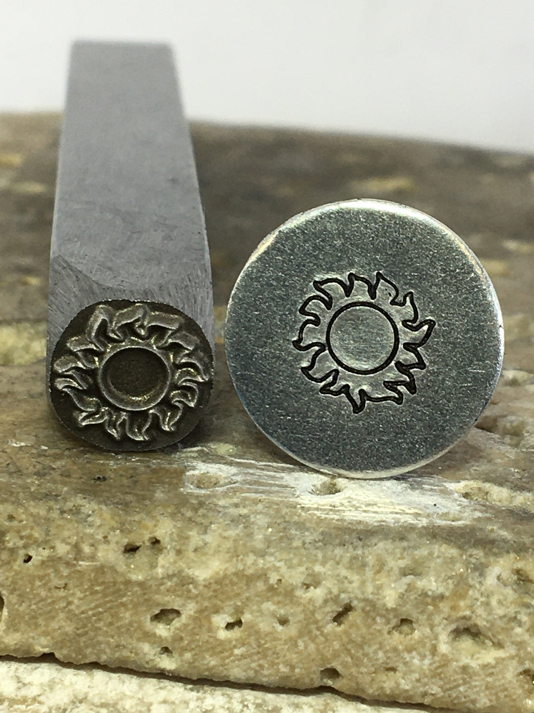 - Engraved deep, with excess material around the design beveled off to assure it does not interfere with your stamping process.